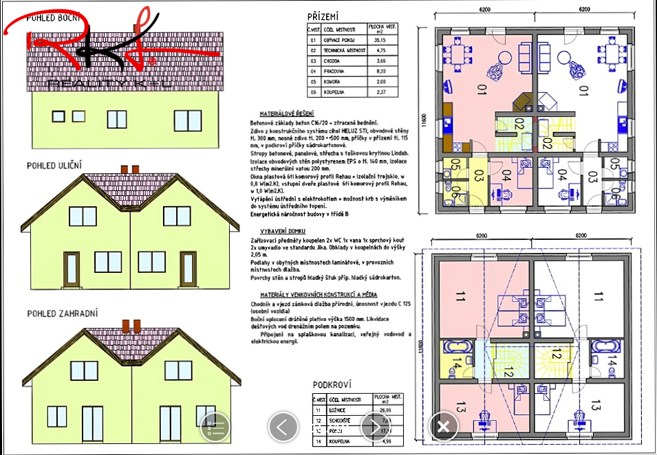 • konstrukce: cihla 30 cm + zateplení 140 mm