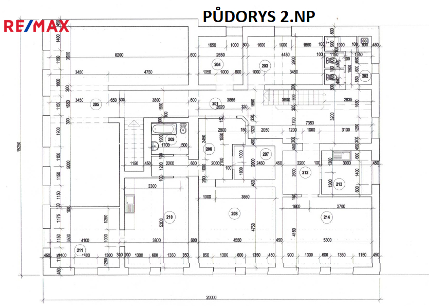 Druhé nadzemní podlaží je využíváno za účelem bydlení, když současná dispozice nabídne plnohodnotnou bytovou jednotku 2+1 a dále 3 samostatné pokoje se společnou koupelnou a kuchyní. Celková podlahová plocha 2.NP činí 231 m².