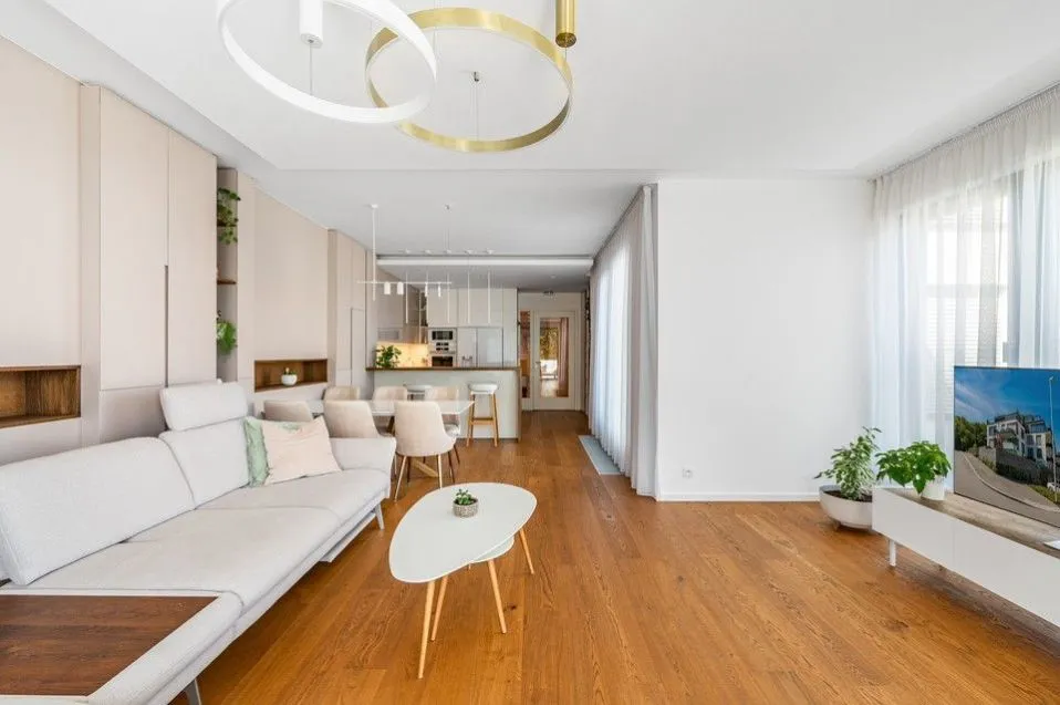 Moderní technologie a vysoké standardy bytu podtrhují jeho špičkovou kvalitu - decentrální větrání s rekuperací tepla i vlhkosti a funkcí dochlazování, inteligentní ovládání domácnosti, dřevěné masivní podlahy s integrovaným fan-coil topením, velkoformátová dřevěná okna s izolačním trojsklem, venkovní elektricky ovládané hliníkové žaluzie, podlahové topení v koupelnách, značková sanita a obklady, protipožární čidla, světelný senzor pohybu. K dispozici je optický internet s rozvody ve všech pokojích.