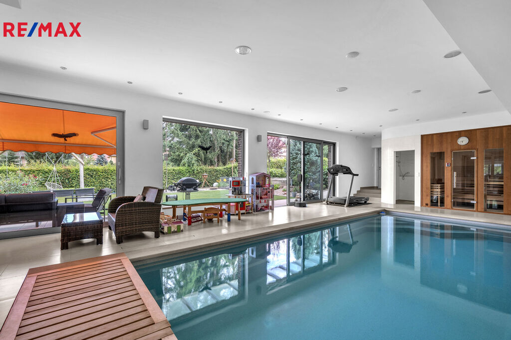 Nabízíme k prodeji luxusní rodinný dům s vnitřním bazénem a trojgaráží po celkové  rekonstrukci, který se nachází v centru Trutnova v ulici Dělnická. Velkorysé a náročné stavební úpravy citlivě respektovaly atmosféru objektu s prvky prvorepublikové architektury a veškeré práce byly provedeny s maximální pečlivostí a citem pro detail, vše za účasti renomované architektonické kanceláře. Nadčasová dispozice domu byla téměř zachována, mezi trojgaráž a stavbu rodinného domu byl vestavěn bazén se saunou, který navazuje přes prosklené dveře přímo na obytný prostor v prvním NP. Bazén je přístupný přímo i ze zahrady velkoformátovými okny. Celková zastavěná plocha objektu je 320 m2 (s bazénem a garáží), užitná podlahová plocha samotného domu 355 m2 (bez bazénové části a garáže). Čtyřpodlažní dům kromě dvou obytných podlaží nabízí ve čtvrtém nadzemním podlaží volnou prostornou půdu vhodnou k případné vestavbě. V prvním nadzemním podlaží v úrovni zahrady je polootevřený prostor denní části tvořený kuchyní s jídelním koutem a spíží, obývacím pokojem, pracovnou, toaletou, technickým zázemím a původním schodištěm. Dále se zde nachází bazén, vířivka a sauna s ochlazovnou. Ve druhém nadzemním podlaží se nacházejí tři prostorné místnosti, z nichž dvě mají východ na balkon lemující jihozápadní část domovní fasády a dvě luxusní koupelny. Jedna z koupelen s vanou i sprchovým koutem je přístupná přímo z ložnice rodičů, v této místnosti se nezapomnělo ani na praktickou šatnu. Foto z místností ve druhém nadzemním podlaží z důvodu zachování soukromí majitele v inzerci chybí. Při rekonstrukci bylo dosaženo energetické náročnosti objektu třídy „B“. Pečlivě založená a udržovaná zahrada s menším dětským hřištěm a prostorem na grilování, perfektní oslunění rodinného domu a přístupové cesty s možností vytápění v zimních měsících podtrhují atraktivnost nabídky.  Klidné místo v zástavbě rodinných a menších bytových domů poskytuje všechny výhody bezprostřední blízkosti centra města s maximální občanskou vybaveností. Více informací k výjimečné nabídce pro náročné klienty a k možnostem financování sdělí realitní kancelář na telefonním čísle 739 486 402.