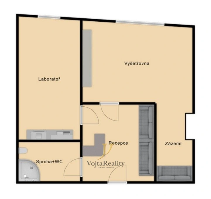 Prostory jsou zkolaudovány pro účely provozování zdravotnického zařízení, konkrétně stomatologického pracoviště. Dispozice prostor se dělí na vstupní místnost, která plní funkci čekárny s recepcí. Z čekárny je přístupné sociální zařízení se sprchou pro zaměstnance pracoviště.