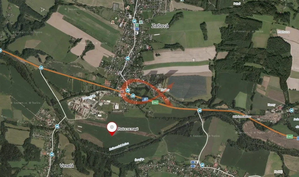 Prodej podílu ve výši ½ pozemku v k.ú. Zašová. Jedná se o pozemek vedený jako orná půda o celkové výměře 3994 m2. Nachází se v nezastavěném území v okrajové části obce. Dle územního plánu je zakreslen jako Z - plocha zemědělská.