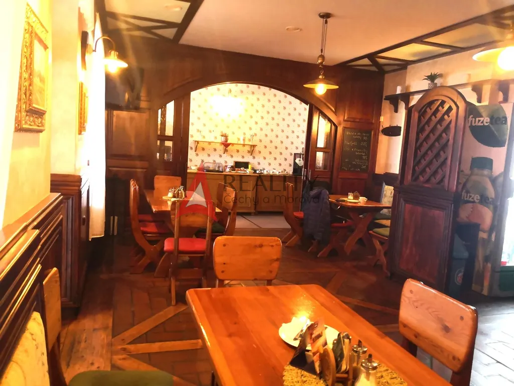 Nabízíme exkluzivně prodej krásného penzionu, který majitel získal od šlechtického rodu "Kolowratů". I díky těmto majitelům je penzion nenásilně zařízen v zámeckém stylu. Za budovou se nachází menší pergola pro uzavřenou společnost. V penzionu je 9 pokojů. Každý má samostatnou koupelnou a WC. Celková kapacita penzionu je 26 lůžek (3x 4lůžkový, 2x 3lůžkový, 4x 2lůžkový pokoj). Na moderně zařízenou kuchyň navazuje stylová restaurace s barem a 2 velké venkovní terasy (1 krytá, 1 otevřená). V případě zrušení kuchyně a zachování pouze přípravny pro snídaně a jídelny je možné z kuchyně vybudovat další 2 apartmány.