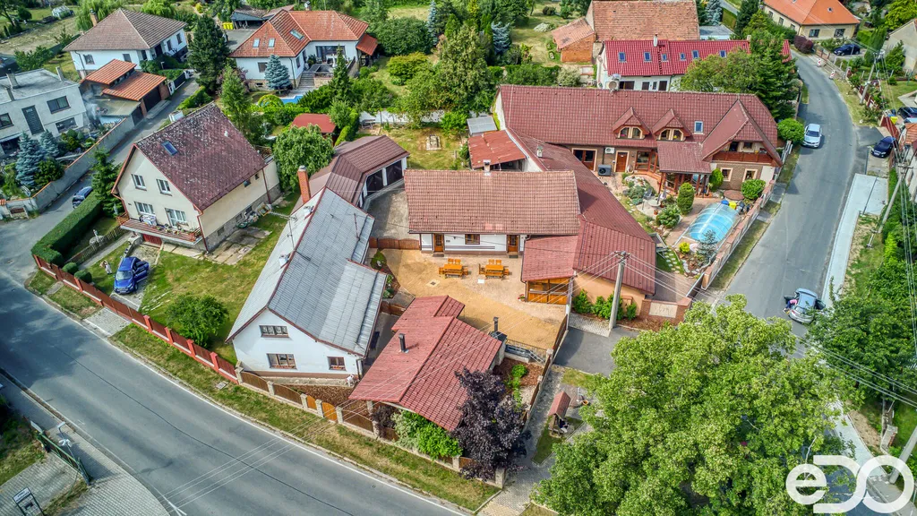 Na pozemku jsou dále vybudovány prostorné garáže, sklad a kotelna.