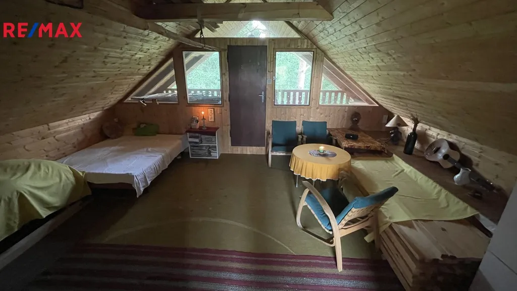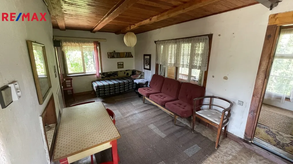 Nabízíme na prodej chatu v osadě U Cajsů nedaleko řeky. Chata je částečně zděná - sklep a přízemí a částečně dřevěná- podkroví, dispozičně jako 2x1+1.