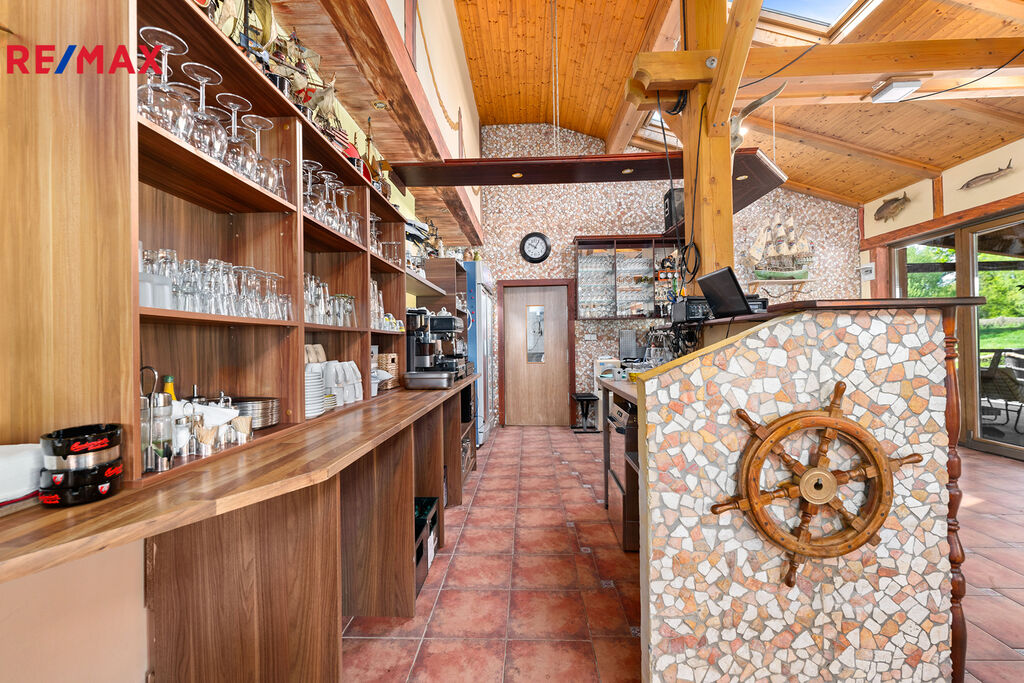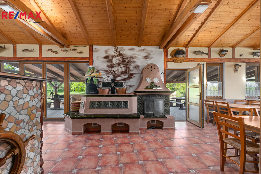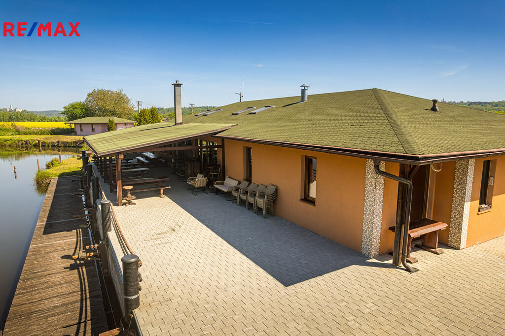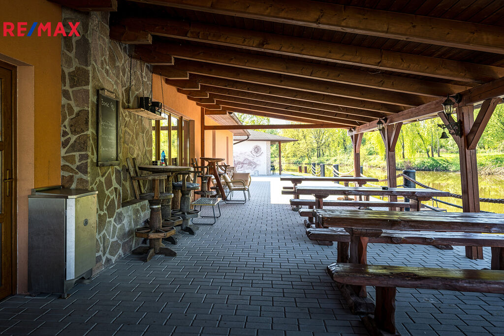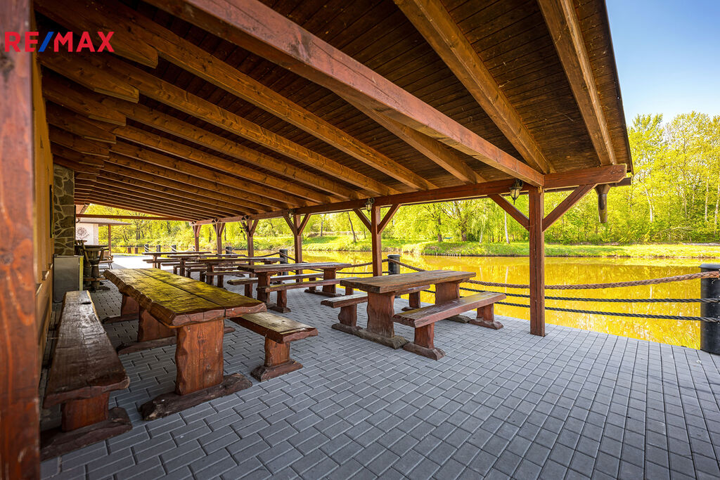 Nabízíme na prodej rekreační areál na břehu vlastní vodní plochy a v těsné blízkosti řeky Vltavy u Hluboké nad Vltavou. Areál má v současné době restauraci s kuchyní pro 50 osob, venkovní terasu nad vodou s kapacitou dalších 100 míst a ubytování - 10 bungalovů pro 4 osoby.