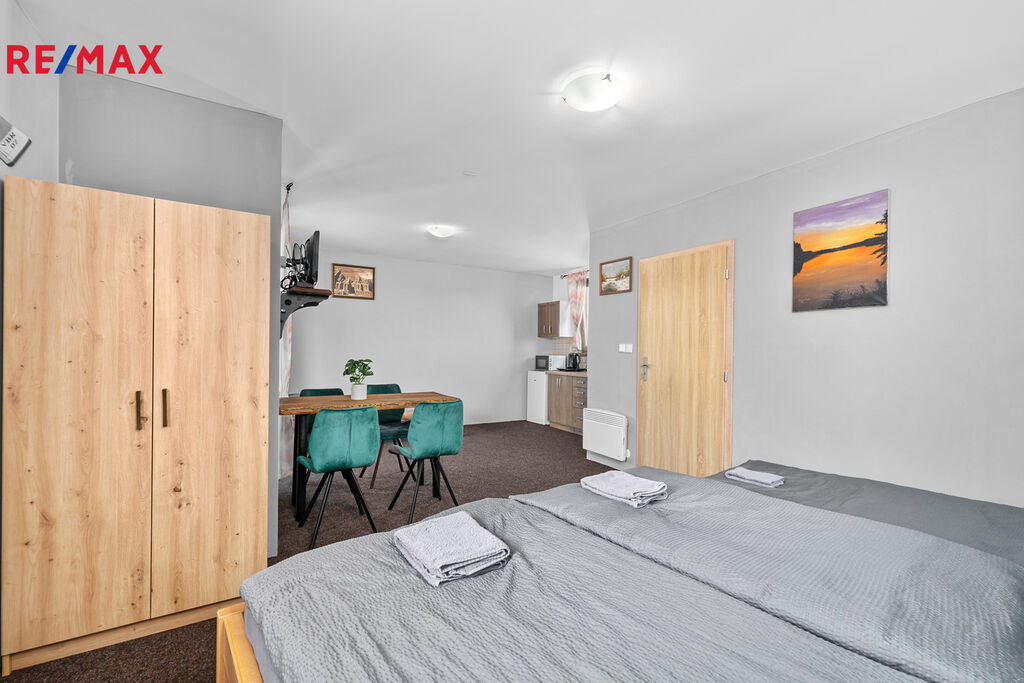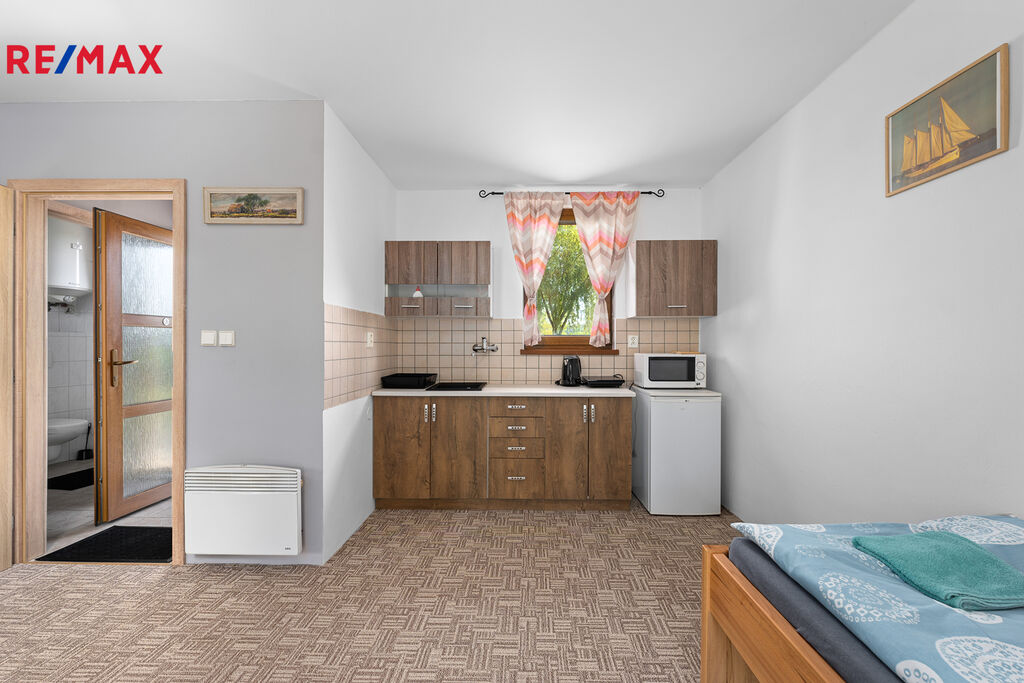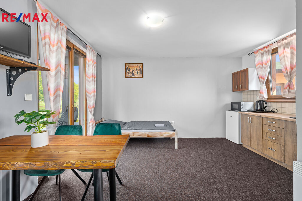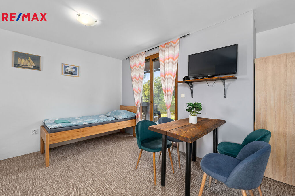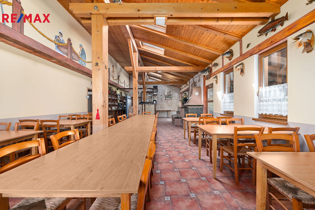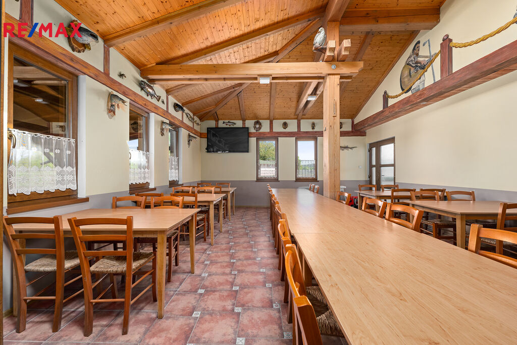 Nabízíme k prodeji restauraci v obci Hrdějovice, č. p. 599, nacházející se v okrese České Budějovice, nedaleko Hluboké nad Vltavou. Tento jednopodlažní cihlový objekt ve velmi dobrém stavu nabízí zastavěnou plochu 544 m² a užitnou plochu 500 m², což představuje skvělé zázemí pro podnikání v gastronomii. Celkový pozemek má rozlohu přibližně 23.000 m² a zahrnuje vlastní vodní plochu o velikosti cca 16.000 m².