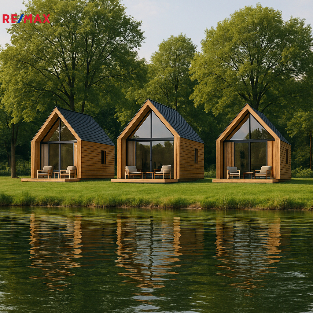 Současně se počítá i s výstavbou designových rekreačních chat zasazených do zeleně, které rozšíří kapacitu areálu a poskytnou pohodlné zázemí rodinám i skupinám přátel.