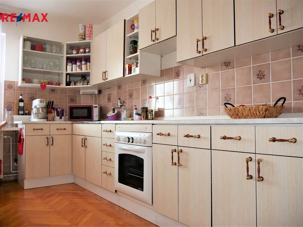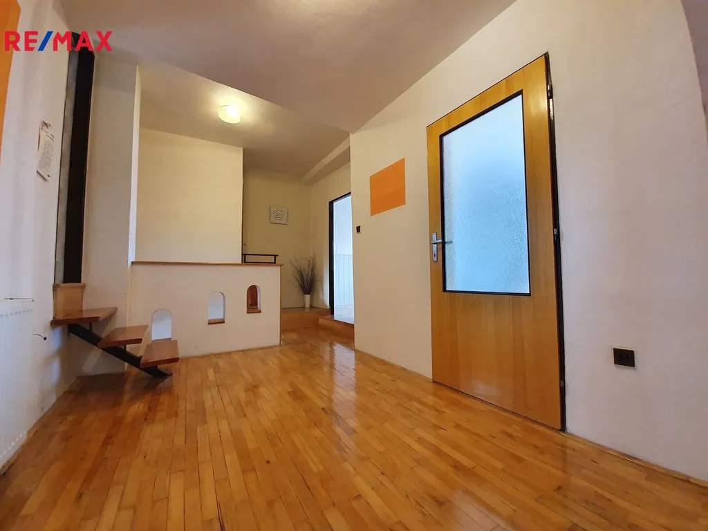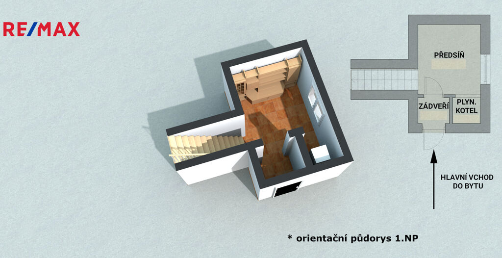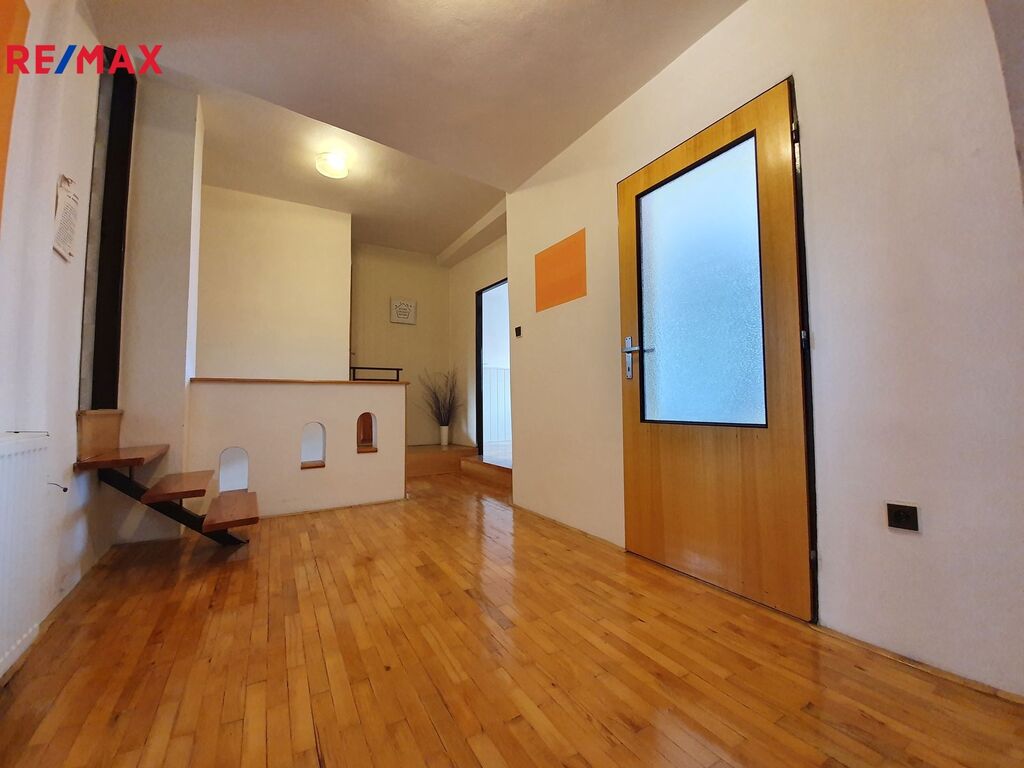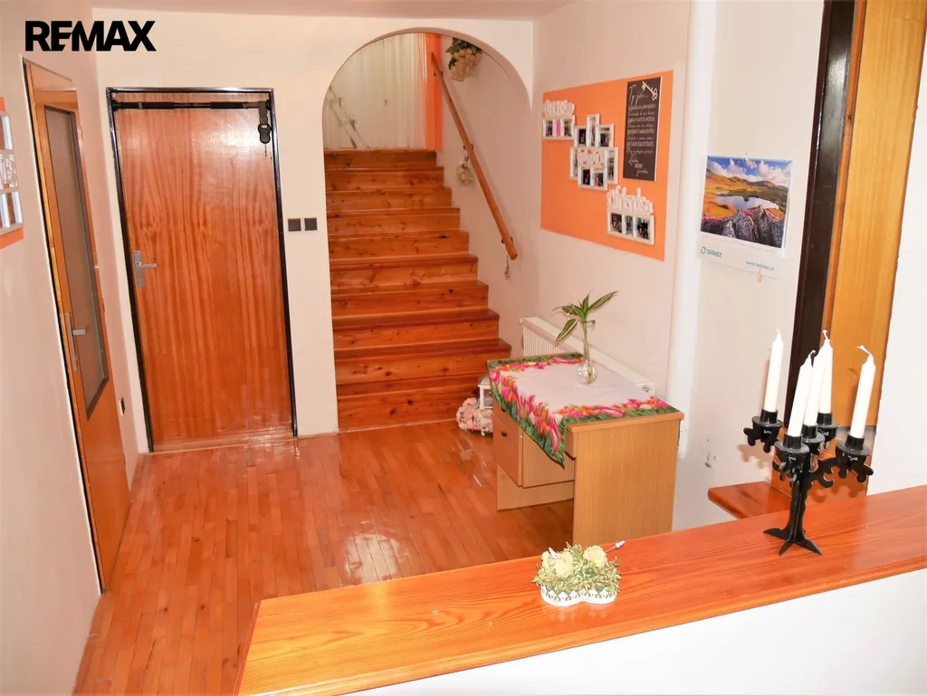 Byt je umístěný ve 2. NP a vstup má zajištěn z 1. NP, kde je umístěno zádveří (prostorná předsíň s umístěným kombinovaným plynovým kotlem) a dřevěným schodištěm do 2. NP. Zde se nachází byt o dispozici 4+1 s balkonem. V 1. PP se nachází prostorný sklep, menší sklípek a technická místnost .