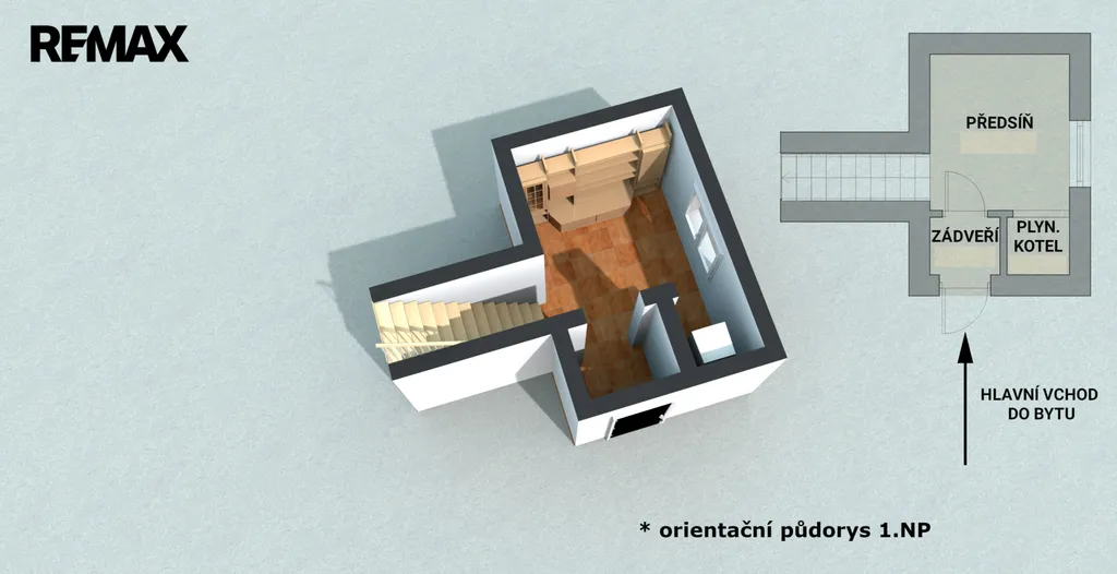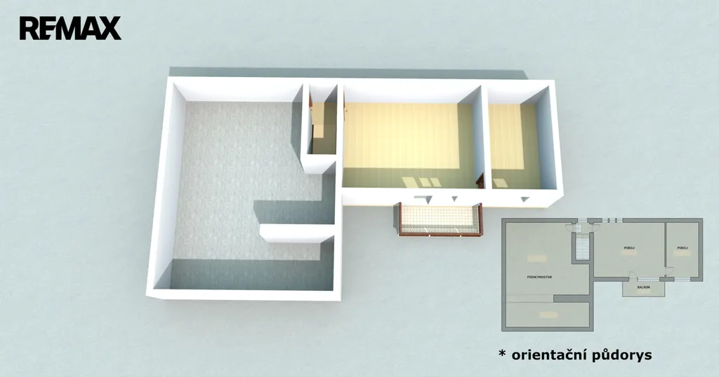 pokoj 22,10 m2, schodiště s podestou 3,96 m2,