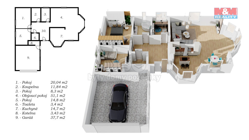 Dům disponuje koupelnu s vanou, dvěma umyvadly a sprchovým koutem, a další samostatnou toaletu. Zahrada o velikosti 948 m² poskytuje dostatek prostoru pro zahradní aktivity a relaxaci. Parkování zajišťuje garáž pro dvě auta. Pro domluvení prohlídky kontaktujte makléře