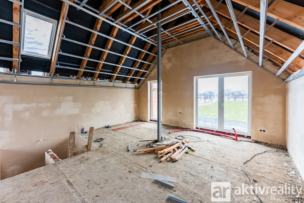 Nabízíme prodej novostavby rodinného domu v unikátním developerském projektu v obci Lužec nad Vltavou, pouhých 20 minut jízdy autem od Prahy, na hezkém místě v těsné blízkosti cyklostezky a umělého plavebního kanálu. Nabízený rodinný dům je situován v souboru celkem 12 designových domů navržených známým pražským architektonickým studiem Versatille. Důraz na prostornost a komfort je patrný ve všech ohledech. Dispozice domu je příjemných 4kk s dvougaráží, kdy celkovou užitnou plochu 145 m2 dělíme na podlahovou plochou bytu 111 m2 a 38 m2 je výměra dvougaráže. K dispozici je také samostatná soukromá zahrada, která je architektonicky řešena tak, aby nabídla co nejvíce soukromí a oddělený prostor od sousedních domů. Obytná dispozice je řešena prakticky, kdy v přízemí naleznete prostornou vstupní předsíň, která je samostatně oddělena od veškerých dalších místností v domě a je zde připraven také prostor na velký botník a šatní skříně. V navazující chodbě se nachází samostatné WC s umyvadlem a velmi praktická samostatná technická místnost. Obytný prostor přízemí je vzdušně otevřený do velkého prostoru, kdy je obývací pokoj plynule spojený s jídelnou a kuchyní s dostatkem pracovních ploch. Schodištěm se dostaneme do chodby v prvním nadzemním podlaží, kde se nabízí tři velké ložnice, prostorná koupelna a rovněž technická místnost na pračku a sušičku. Moderní design a světlé interiéry Vám poskytnou pocit lehkosti a prostornosti, který si zamilujete. S moderním vytápěním pomocí tepelného čerpadla v kombinaci s podlahovým topením ve veškerých prostorách domu a rekuperací nejen ušetříte na energii a finančních nákladech, ale také přispějete k ochraně životního prostředí. Soukromá zahrada u každého domu představuje ideální místo k odpočinku, setkávání s rodinou a přáteli, nebo pěstování rostlin a zeleně. Lužec nad Vltavou nabízí vynikající dostupnost do větších měst, Praha 25 minut autem, Mělník 10 minut autem. K jízdě do Prahy či Mělníka můžete rovněž využít i autobusovou dopravu. V obci je Kulturní středisko, Kino, Divadlo, Mateřská škola, Základní škola, Jednotka sboru dobrovolných hasičů, Knihovna, Galerie, Fotbalový klub, dětská hřiště. Blízkost k cyklistické trase a historickému plavenému kanálu, které protínají okolní krajinu, nabízí nekonečné možnosti pro rekreační aktivity. Pro milovníky cyklistiky a pěší turistiky je toto místo doslova rájem díky probíhající cyklotrase a snadnému přístupu k trávení volného času a příjemným vycházkám. Lokalita rodinného domu nabízí nejen ideální dostupnost díky blízké dálnici do hlavního města Prahy, ale díky své poloze i klidné místo na rodinný život s veškerou potřebnou občanskou vybaveností.