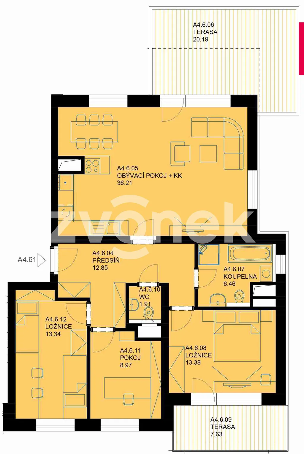 Nabízíme Vám exkluzivně k prodeji novostavbu bytu 4+kk v Uherské Hradiště - ul. Zahrádky. Jedná se nový byt nyní v dokončeném úspěšném projektu Nové Štěpnice vedle nemocnice. Byt se nachází v 6.NP šestipatrového bytového domu s označením A4. Dispozice bytu: prostorná chodba se zádveřím s možností umístění vestavěných skříní, dva pokoje, ložnice se vstupem na terasu, samostatné WC, koupelna, obývací pokoj s kuchyní a jídelnou se vstupem na velkou terasu. Bytový dům je bezbariérovým přístupem a prostorným výtahem. U domu je zabezpečen potřebný počet parkovacích míst s možností koupě garáže nebo vlastního venkovního parkovacího stání přímo před domem. Celková plocha bytu je 121 m2. Obytná plocha bytu bez teras činí 93 m2. Byt nabízí dvě prostorné terasy o celkové ploše 28 m2. Vytápění je zabezpečeno dálkově se samostatným odečtem spotřeby energií v bytě /platíte jen to, co spotřebujete/. Energetický štítek splňuje kategorii A, tedy mimořádně úsporné bydlení na měsíční náklady. Z PRODEJNÍ CENY NEPLATÍTE PROVIZI! Ve spolupráci s bankami jsme pro Vás připravili výhodné financování. Lokalita nové Štěpnice nabízí blízkou dostupnost nákupního střediska, dětského hřiště, lesoparku, školy, školky, autobusové zastávky, vlakového nádraží, lékárny, nemocnice, cyklostezky. Pohodlnou chůzí do centra města se dostanete cca za 8 min. Byt je volný ihned.
