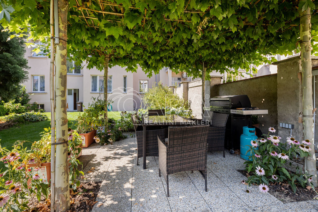 Z centrální chodby přístupná zahrada ve vnitrobloku byla zařízena ve spolupráci se zahradními architekty.