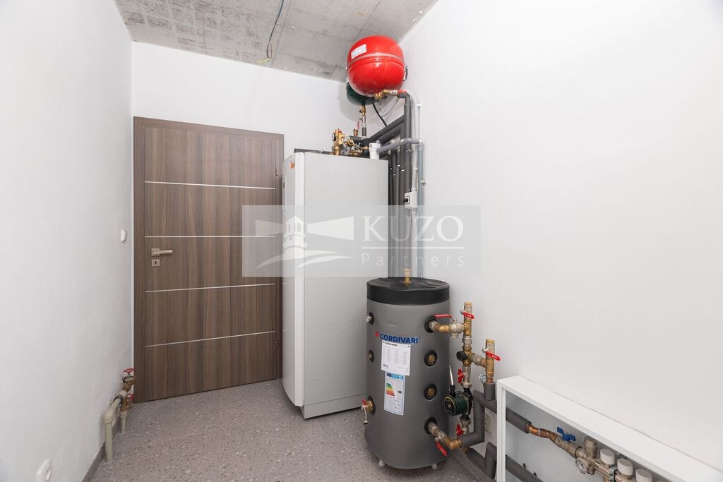 Vytápění je realizováno prostřednictvím podlahového teplovodního systému REHAU. Příprava TUV je řešena stejným způsobem jako vytápění, pomocí TČ THERMIA o výkonu 10 KW.