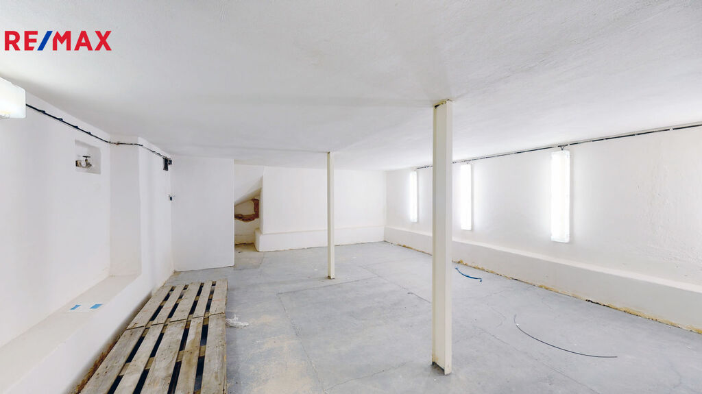 Prostorný sklad 39m² pod hlavní částí je přístupný po schodišti.