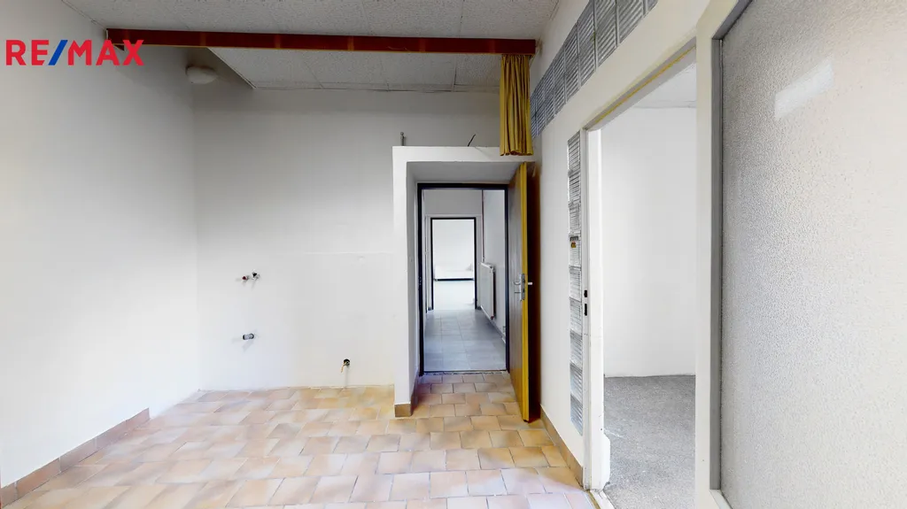 Další místností je samostatná kancelář s oknem do ulice, dvě další místnosti mají okna orientována do vnitrobloku.