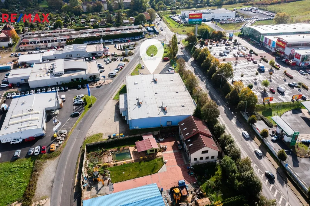 Nabízíme prodejní halu s parkovací plochou pro 50 vozů. Objekt, kolaudovaný v r. 2006 je rozdělen na dvě obchodní jednotky. První prodejna OKAY Elektro 1182 m², druhá prodejna Hafani 423 m². Zázemí pro zaměstnance 63 m² je společné, stejně tak i prostor pro příjem zboží 47 m² s roletovými vraty v zadní části budovy.