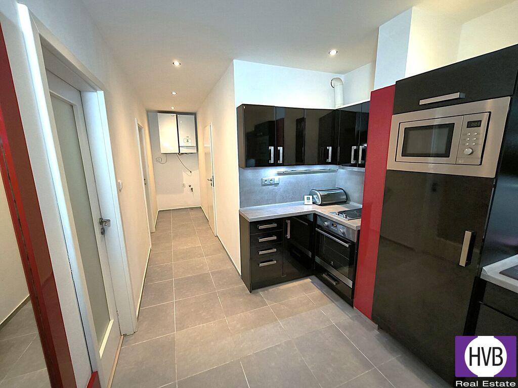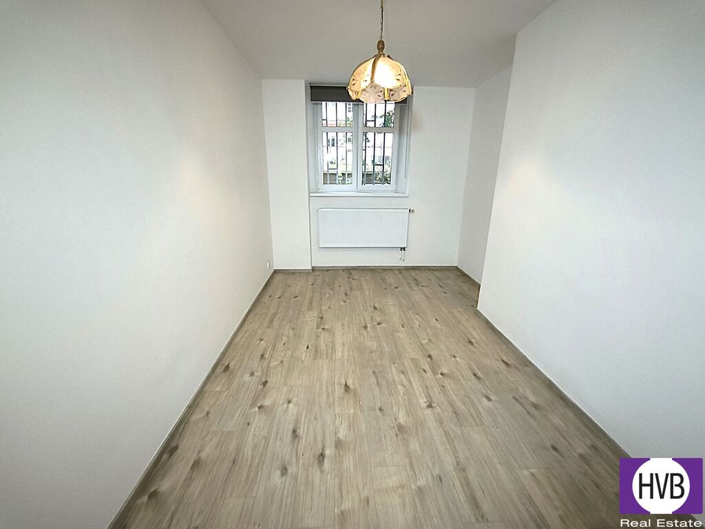 Kancelář nabízí 2 místnosti a moderně zařízenou kuchyň, koupelnu s WC, chodbu, k jednotce náleží i sklep (3 m²). Útulný charakter interiéru dodává výhled do klidné zahrady.