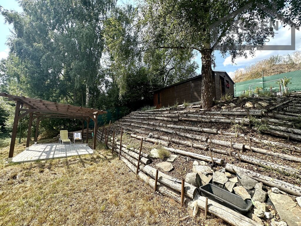 Dovoluji si Vám nabídnout k prodeji zahradu se stavbou dřevostavba (16m2) s řádným územním souhlasem (stavba nevyžaduje stavební povolení není zapsána v KN) a pergolou v Tachově, ul. Příčná. Chata byla na pozemek umístěna v roce 2023, je usazena na patkách (nemá pevné základy). Dle územního plánu je plocha zahrady určena k rekreaci. Zastavěná plocha je o výměře 16 m2, celková rozloha zahrady činí 365 m2. Předmětem prodeje je stavba s obytnou částí a kuchyňským koutem, navazující kolna, pergola, suché WC a zahrada. V chatě je rozvedena elektřina (220V, 380V), je vytápěna elektrickým přímotopem. Okolí chaty je vydlážděné, před chatou je vybudovaný sklípek. Vodu na zalévání je možné čerpat z veřejné studny v blízkosti pozemku, voda není zavedena do chaty. Zahrada je ve svahu, terén je upravený. Pozemek je osazen keři a nabízí možnost pěstování. Zahrada je oplocena částečně a nabízí výhled do okolní krajiny. Tato nabídka je vhodna k odpočinku a rekreaci.
