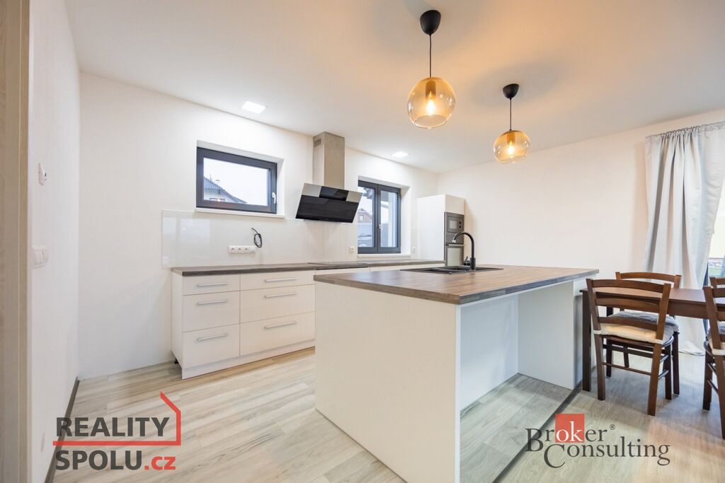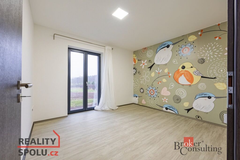 Dominantou interiéru je prostorný a světlý obývací pokoj s kuchyňským koutem o velikosti téměř 40 m², ze kterého vedou francouzská okna přímo na terasu a do zahrady. Kuchyň je doplněna praktickou spíží. Dům dále nabízí čtyři samostatné pokoje, dvě koupelny, samostatné WC, technickou místnost a zádveří s možností vestavěných úložných prostor. Hlavní ložnice disponuje velkými okny s výhledem do zahrady.