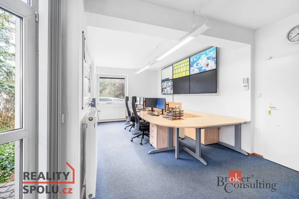 Na prodej administrativní objekt s vlastním pozemkem v obci Průhonice, který lze rekolaudovat na bytový dům s možností vytvoření až 3 luxusních bytových jednotek. Budova se skládá ze tří podlaží a celková plocha činí 447 m². Aktuální dispozice s 9 oddělenými místnostmi a společnými prostory umožňuje snadnou přestavbu na byty. Přízemí s halou, kanceláří, zasedací místností a garáží by mohlo sloužit jako samostatná bytová jednotka, zatímco první a druhé patro by se dala přetvořit na dvě další prostorné jednotky. Budova je vytápěna novým plynovým kotlem Viessmann a nabízí parkovací místa pro minimálně 12 aut. Automatická vrata a bezpečnostní systém EZS přispívají k celkové bezpečnosti. Lokalita je ideální pro bytový dům díky snadné dostupnosti Prahy a dálnice D1.