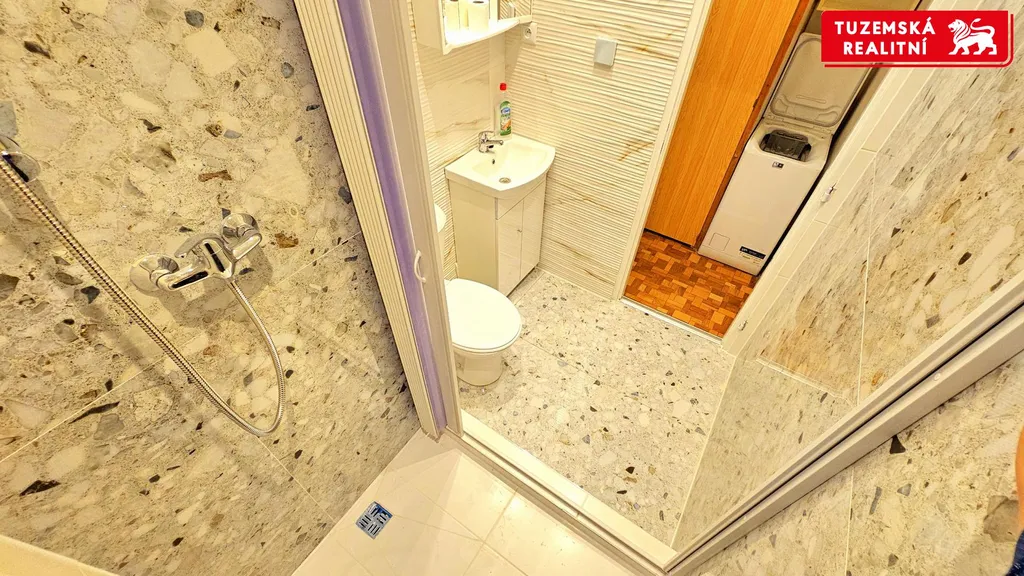 Byt je po čerstvé rekonstrukci a je plně vybaven nábytkem, spotřebiči i dekoracemi, přesně tak, jak je vidět na fotografiích a videu. Hned Vás zaujmou velkoformátové lesklé obklady a dlažba v koupelně.