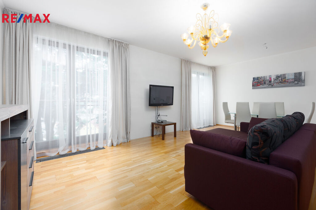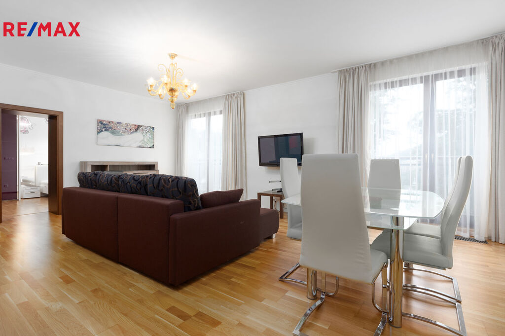 Byt je prostorný a světlý, zároveň působí velmi útulně. Obývací pokoj je spojený s kuchyňskou linkou, která je vybavena vestavěnými spotřebiči, pro maximální komfort. Byt disponuje prostornou a světlou ložnicí, která je vybavena vlastní koupelnou. Velké plus shledáváme i v podobě 2 parkovacích míst.