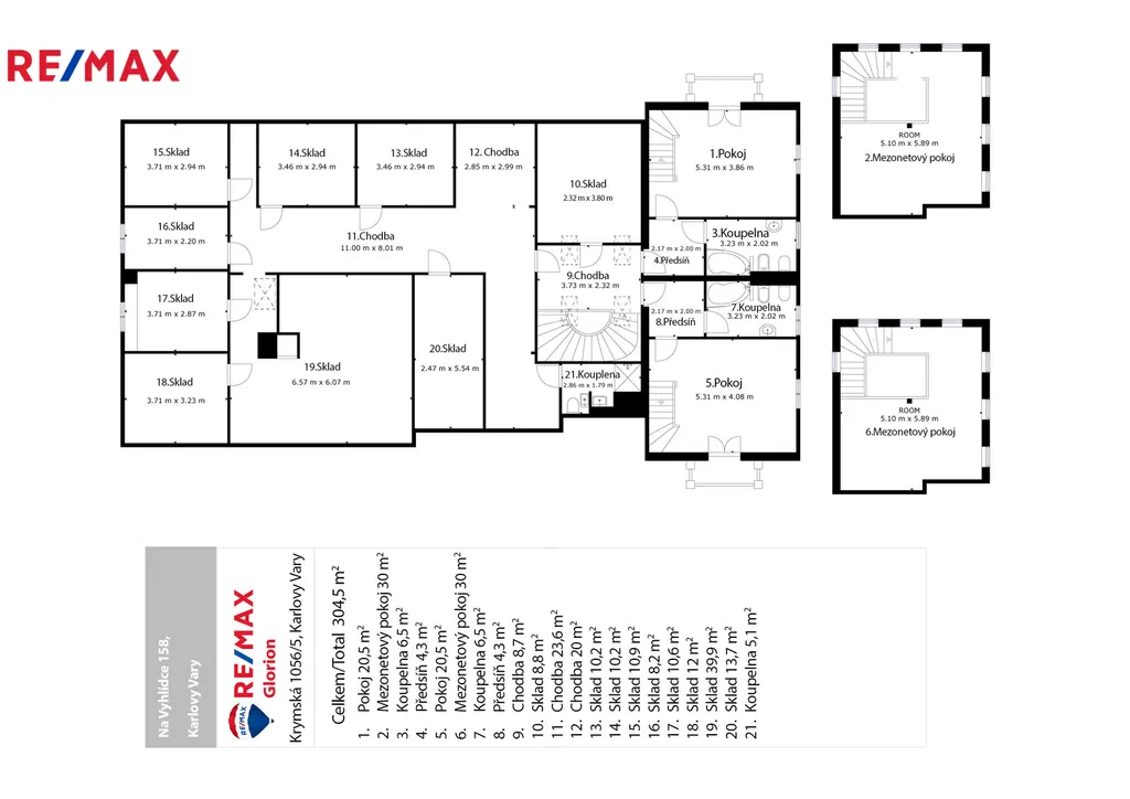 - sklady, zázemí pro personál, prádelna a garáž.