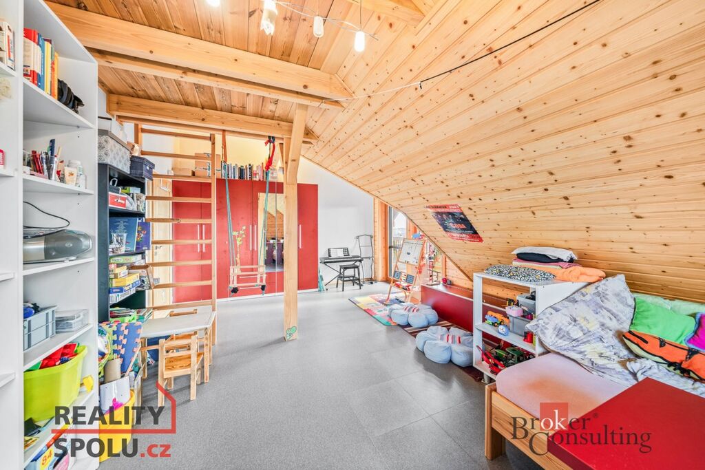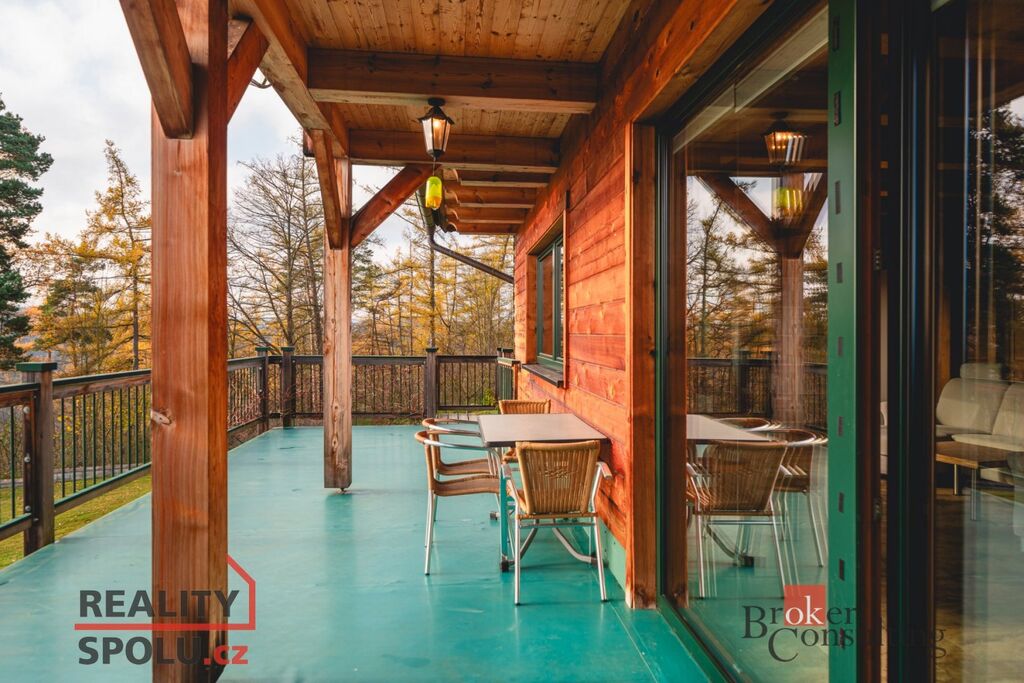 Celková užitná plocha 428 m² se rozprostírá na dvou nadzemních podlažích a suterénu, na prostorném, oploceném pozemku o rozloze 2 953 m² na klidném, vyvýšeném místě nedaleko lesa.