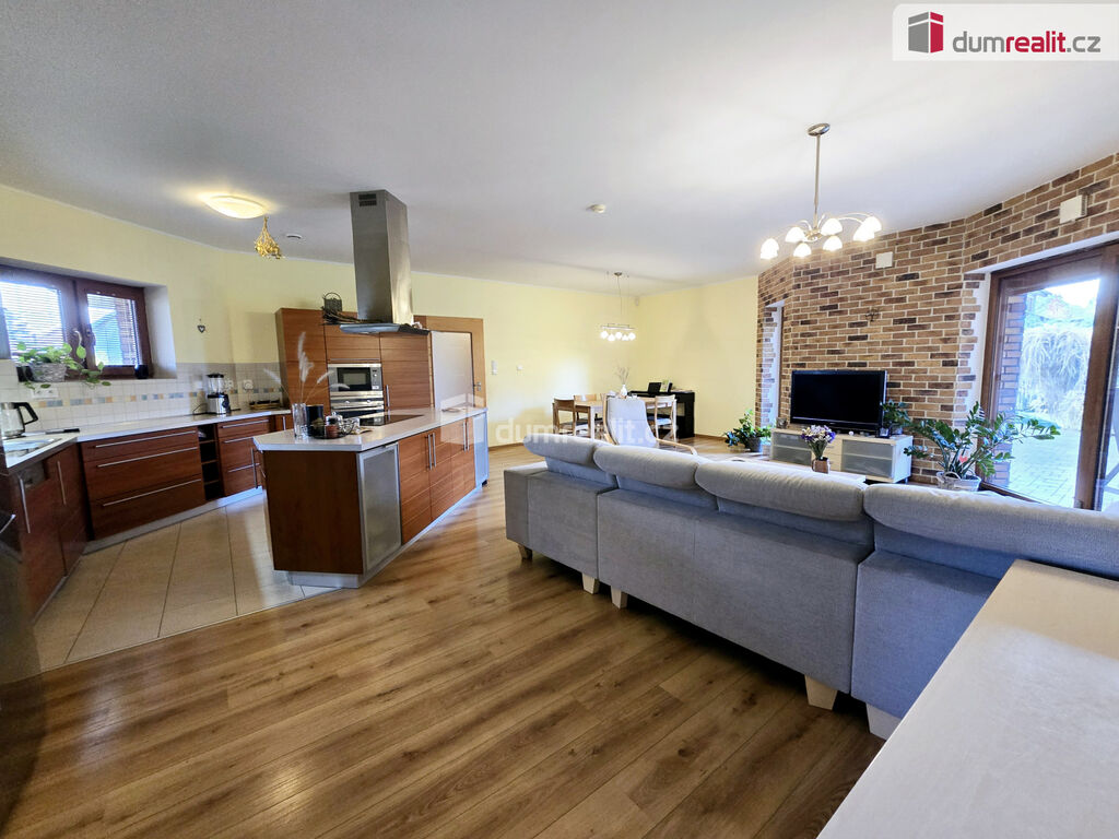 prodej rodinného domu ve Staré Boleslavi, která je součástí dvojměstí Brandýs nad Labem-Stará Boleslav. Ne, náhodou se toto město pravidelně umisťují v TOP 5 městech v ČR, podle indexu kvality života a bydlení. Dům je dispozičně řešen jako 4+kk a disponuje užitnou plochou přes 140 m² a pozemkem o rozloze cca 649 m². V případě potřeby lze upravit dispozici dle vlastních potřeb. Nosné stěny v domě  jsou pouze obvodové. Díky tomu lze všechny vnitřní příčky upravit a také v případě nutnosti řešit výměnou vazníků rozšíření prostoru o dalších cca 90m². Součástí pozemku je také zahradní domek o velikosti 24m² s mezipatrem , sloužící pro uskladnění všeho potřebného od kol, lyží ,sekačky, kol pro auta. Dále je na pozemku zkolaudovaná studna, sloužící jako vlastní zdroj vody pro zalévání zahrady. Zde je již vybudována závlaha. Dům byl kolaudován roku 2008 a postaven z veloxu o tloušťce 37 cm s vloženou 15cm tepelnou izolací. Výška stropů v domě je 2, 62 m². Vnitřek domu je uspořádán následovně: přes zádveří (jsou zde již vybudované vestavěné skříně) navazuje prostorná chodba, odkud jsou přístupné všechny místnosti v domě. Konkrétně se bavme o dvou dětských pokojích/ložnicích, technické místnosti/prádelně a koupelny, která je společná s toaletou. Najdeme zde sprchu i rohovou vanu. Z chodby se rovněž dostaneme do velkoryse řešeného obývacího pokoje s kuchyňským koutem, který byl prakticky rozdělen na několik zón. Současní majitelé zde vybudovali prostor pro trávení času u televize, tedy klasický obývací pokoj, kuchyňský kout s dostatkem prostoru i pro velké kuchtíky, ale také jídelní, nebo pracovní kout. Ze všech obytných místností vede přímý vstup na terasu/ zahradu. Na oknech jsou nainstalované venkovní rolety. Vytápění v domě je řešeno, jako podlahové teplovodní, tedy bez radiátorů. Teplotu v jednotlivých místnostech lze regulovat termostaty. Dům pro ohřev vody a rekuperaci využívá jednotku LWA 303 od firmy Stiebel Eltron. Dům se vyznačuje dostatkem soukromí a vskutku jedinečnou atmosférou. Pokud si přejete bydlet v klidu a mít kolem sebe dostatek zeleně, přesto být součástí města s výbornou dostupností do Prahy, pak je tento dům právě pro Vás. V Brandýse n/L a St. Boleslavi najdete vše co k životu potřebujete a bude Vás činit šťastnými. Poloha domu je velmi dobře položena v rámci města. Pěšky se dostanete do centra za 7 minut. V centru je základní škola, obchody,  atd. Mateřská škola ve vzdálenosti 2 minut od domu. Pokud jste milovník přírody, ať zvolíte koupání na Proboštských jezerech, nebo procházku lesem, máte to téměř za rohem. Jestli máte rádi sporty – golfové hřiště 5minut, tenisový a squashový kurt 1min. od domu pěšky. Velkou výhodou celé lokality je, že dům je umístěn ve slepé ulici.