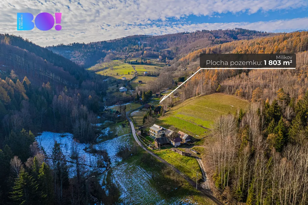 Máte sen o bydlení na místě, kde příroda a klid hrají hlavní roli? Nabízíme Vám ke koupi pozemek v obci Milíkov u Jablunkova o celkové výměře 1 803 m². Tento pozemek, nacházející se v malebném údolí Jasení pod vrcholem Kozubová, je ideální pro ty, kdo hledají harmonii s přírodou a chtějí si užít výhledy na Beskydské vrchy.