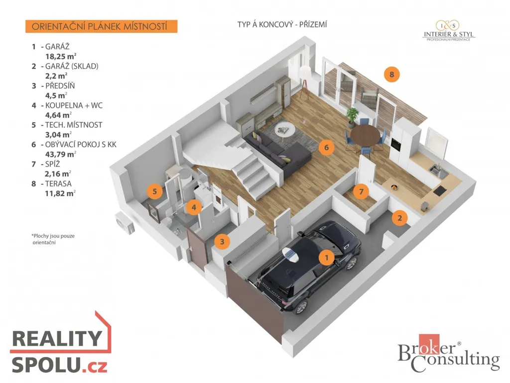 We are pleased to present type A (end of the block) houses in an exclusive project of terraced houses in Ořech u Prahy.