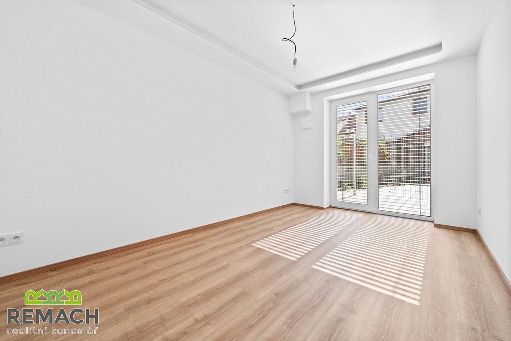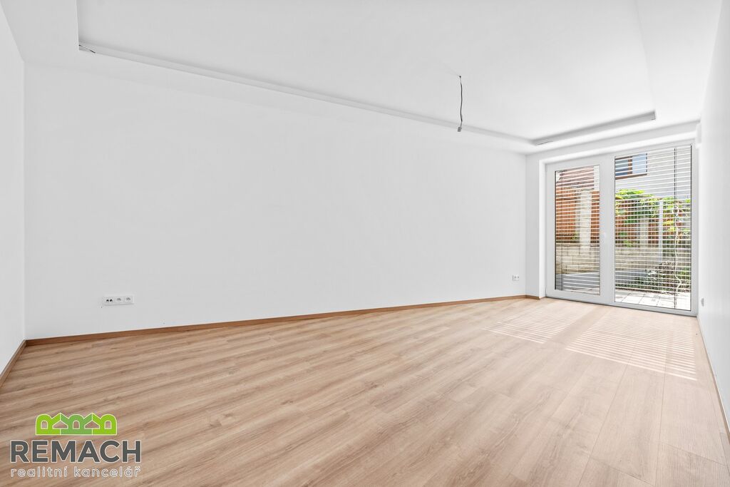 Ve vstupní chodbě máte prostor pro vestavnou skříň a botník. Z chodby je vstup do šatny, koupelny a technické místnosti, dále do obývacího pokoje s kuchyňskou linkou a jídelním stolem. Tento prostor má výměru přes 37 m2. Z obývacího pokoje i obou ložnic máte vstup na terasu o velikosti 24,1 m2.