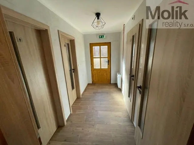 Na tento objekt navazuje další budova, která je průchozí v přízemí bašty a zde je v přízemí umístěno zázemí restaurace jak pro hosty, tak pro personál. Sklad pro bar, 2 x sklízecí místnost, toalety pro invalidy, toaleta pro ženy a toalety pro muže, dále je zde komplet nově vybavená kuchyň se skladovými prostorami, šatna pro zaměstnance včetně sprchového koutu a toaletou. Dále je v přízemí umístěn prostor kanceláře a technická místnost. Tyto prostory prošly v roce 2024 kompletní rekonstrukcí. Nová elektroinstalace, odpady, voda, omítky, instalován Lapol, příprava na tepelné čerpadlo. V celém zázemí je instalována vzduchotechnika. Objekt je částečně zateplen a je udělaná nová fasáda. Součástí je velká prostorná terasa a dále za objektem je umístěný prostorný dvůr, který je přístupný z ulice Komenského a jsou zde nová dvoukřídlá dřevěná vrata.