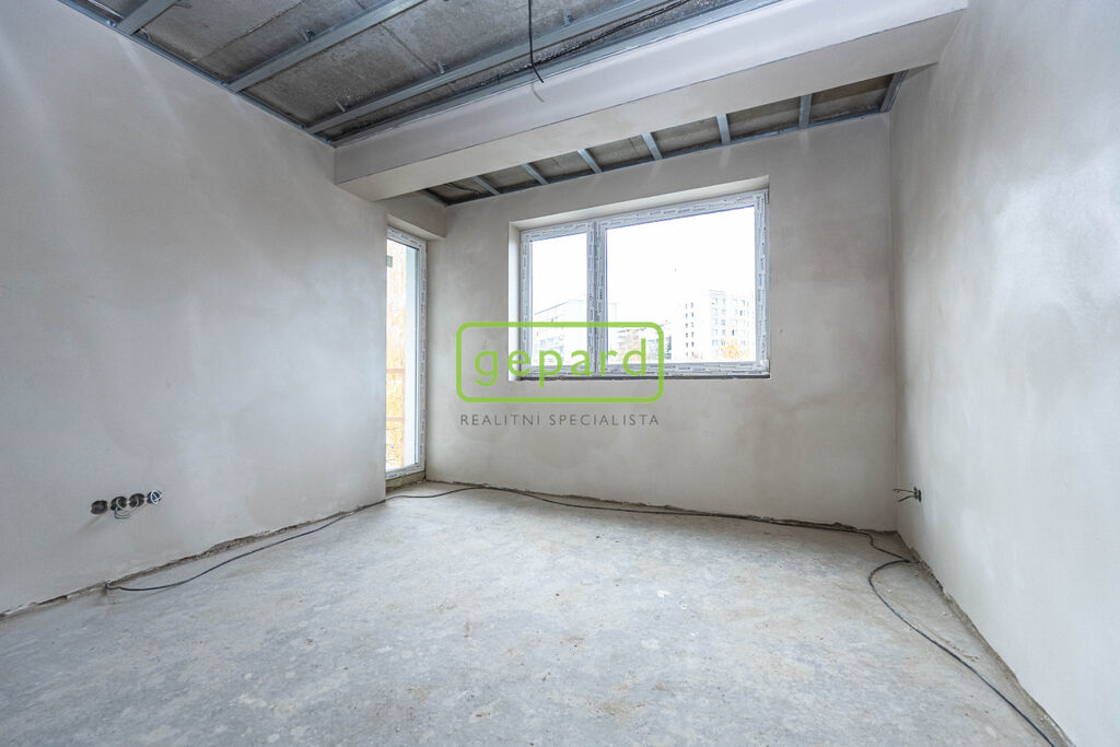 Realitní společnost Gepard nabízí byt v novostavbě 4+kk o velikosti 112,5m2, balkon 9,7m2 se vstupem ze dvou pokojů a druhý balkon 6,2m2 se vstupem z obývacího pokoje, dále 1x garážové stání, 2x venkovní parkovací stání na pozemku a sklep 2,8m2 v 1.PP.