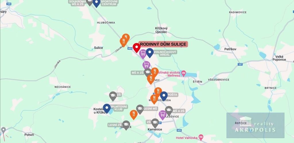 Lokalita je velmi klidná a výhradně rezidenční, v sousedství luxusních domů s velkými pozemky. Obec Sulice se nachází v okrese Praha-východ, s výbornou dostupností do centra Prahy, kam se autem dostanete do 30 minut.