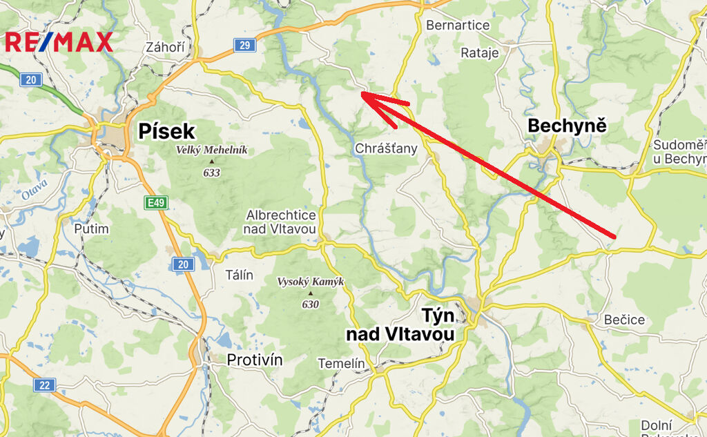 Pozemek navazuje na asfaltovou komunikaci a je zde také přípojka elektřiny. Pozemek je rovinatý do písmene "L".