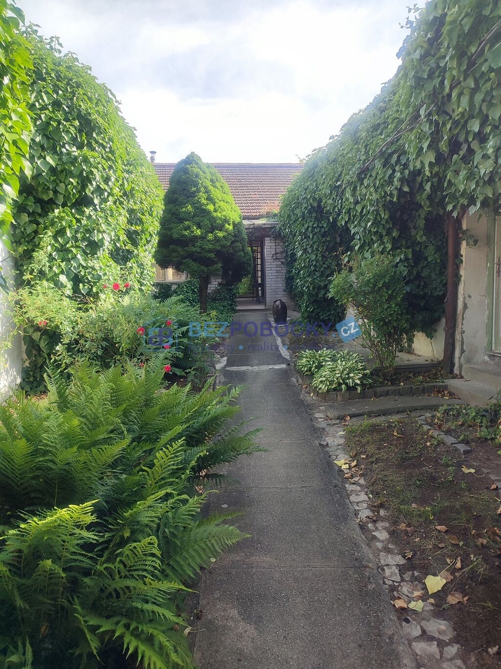 Dům má velký potenciál - lze zde vybudovat krásné bydlení ve městě a zároveň s výhledem do zeleně vlastního pozemku s naprostým soukromím uzavřeného dvora s mnoha krásnými zákoutími. Ze zadní zapuštěné části dvora se po schodech dostanete na prosluněnou horní zahradu s posezením. Na celém pozemku je vzrostlá zeleň a vinná réva.