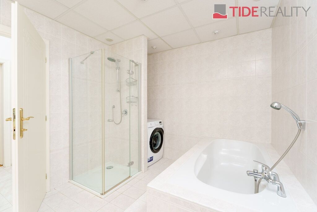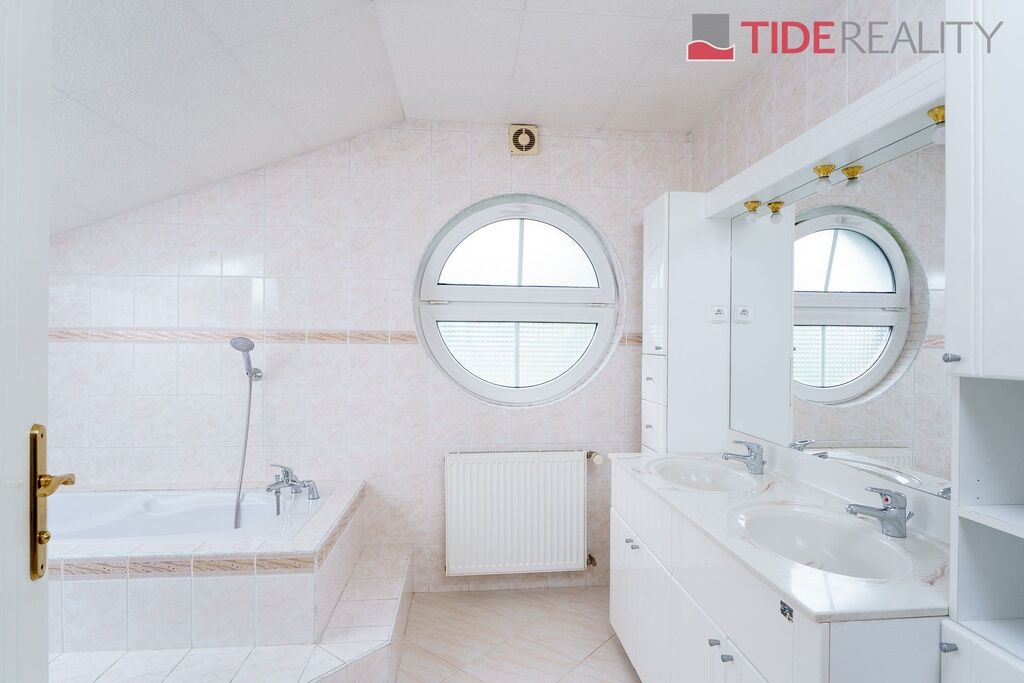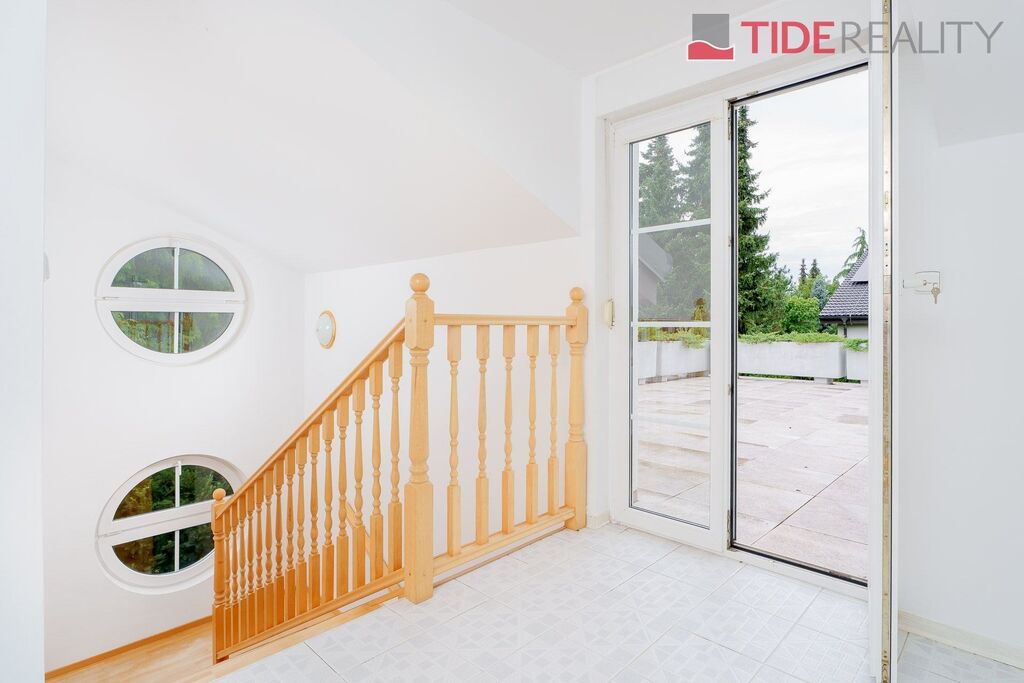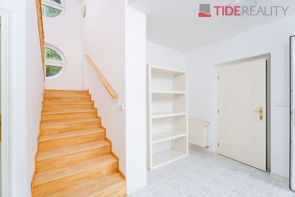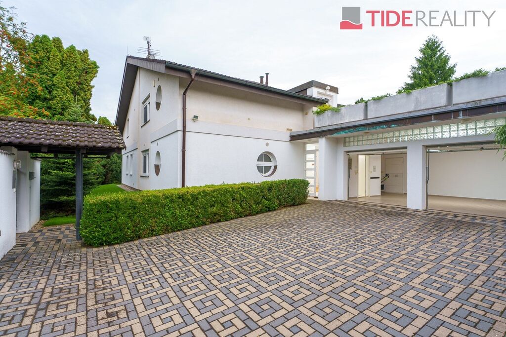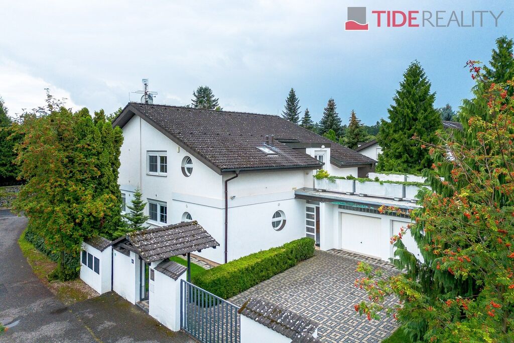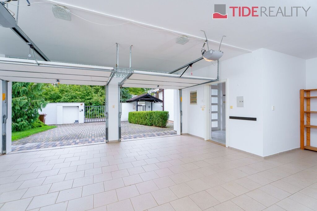 Nabízíme ke koupi velmi prostornou vilu, na nádherném a jedinečném místě Průhonic v sousedství Průhonického parku. Dům obklopený vzrostlou zelení zajišťující naprosté soukromí může být díky své velikosti i dispozici využívaný i k vícegeneračnímu bydlení. Dům se zastavěnou plochou 283m2, pečlivě udržovanou vzrostlou zahradou o velikosti 717m2, má užitnou plochu 416m2, která je rozložena ve třech podlažích. 1.PP je skladovací/úložný prostor o velikosti 60m2, v 1.NP (197m2) se nachází jednak dvougaráž s přímým napojením na dům a dále především velkoryse řešený obývací pokoj propojený s kvalitní a plně vybavenou kuchyní na celkové ploše 72m2 s východem na jihozápadní terasu a zahradu, dále 2 prostorné pokoje, 2 koupelny, samostatné WC, kotelna(plyn) pro toto podlaží.