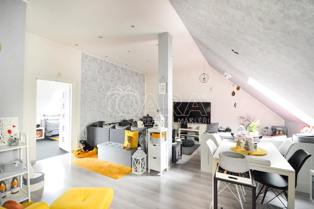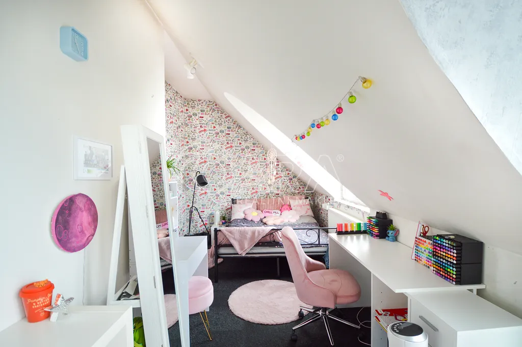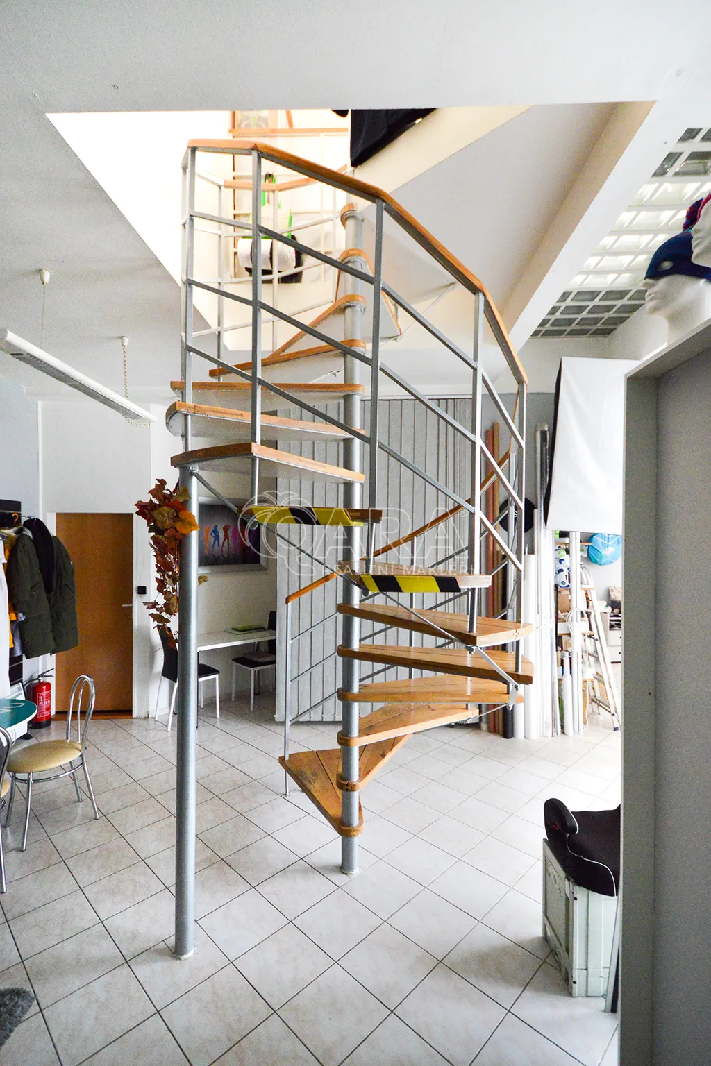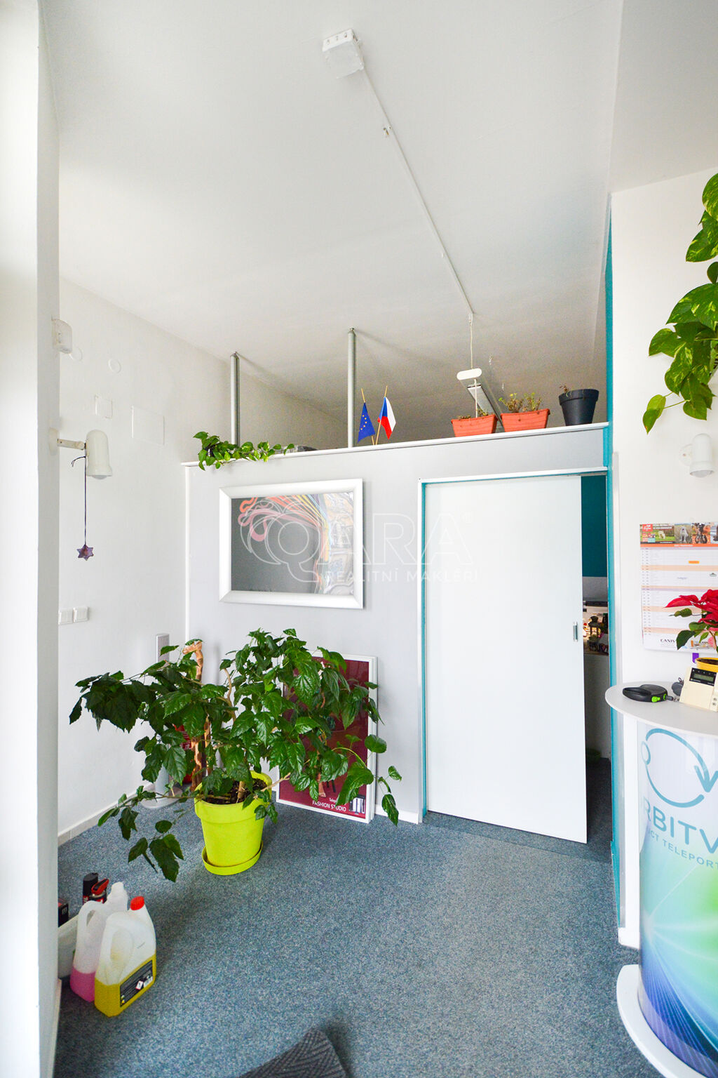 V přízemí je prostorný ateliér o rozloze 125 m², ideální pro galerii, showroom či kancelářské prostory. V prvním patře je světlý a prostorný byt 2+kk o ploše 97 m², přístupný točitým schodištěm z přízemí, což zajišťuje jedinečné propojení pracovního a soukromého prostoru. Vhodné také na investici, protože momentálně je dům obsazen dobrými nájemníky.