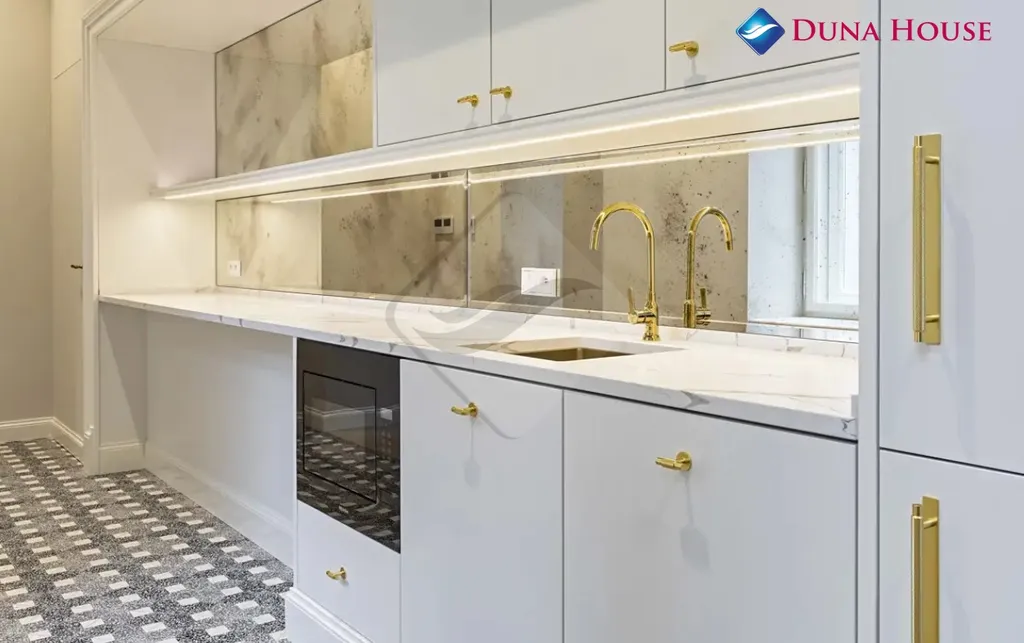 Hygienické zázemí je osazeno nadstandardními značkovými zařizovacími předměty, které společně s obklady a keramikou respektují historický charakter budovy.