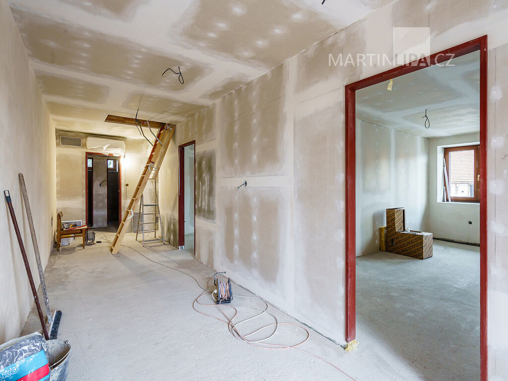 • Nově zrekonstruovaná budova: V přízemí se nachází prostorná dílna vybavená dvěma velkými vstupními vraty a kladkovým jeřábem, ideální pro různé opravárenské a výrobní činnosti. V patře se nachází byt 2+1 těsně před dokončením, který lze využít jako kancelářské prostory, poskytující komfortní a funkční pracovní prostředí.