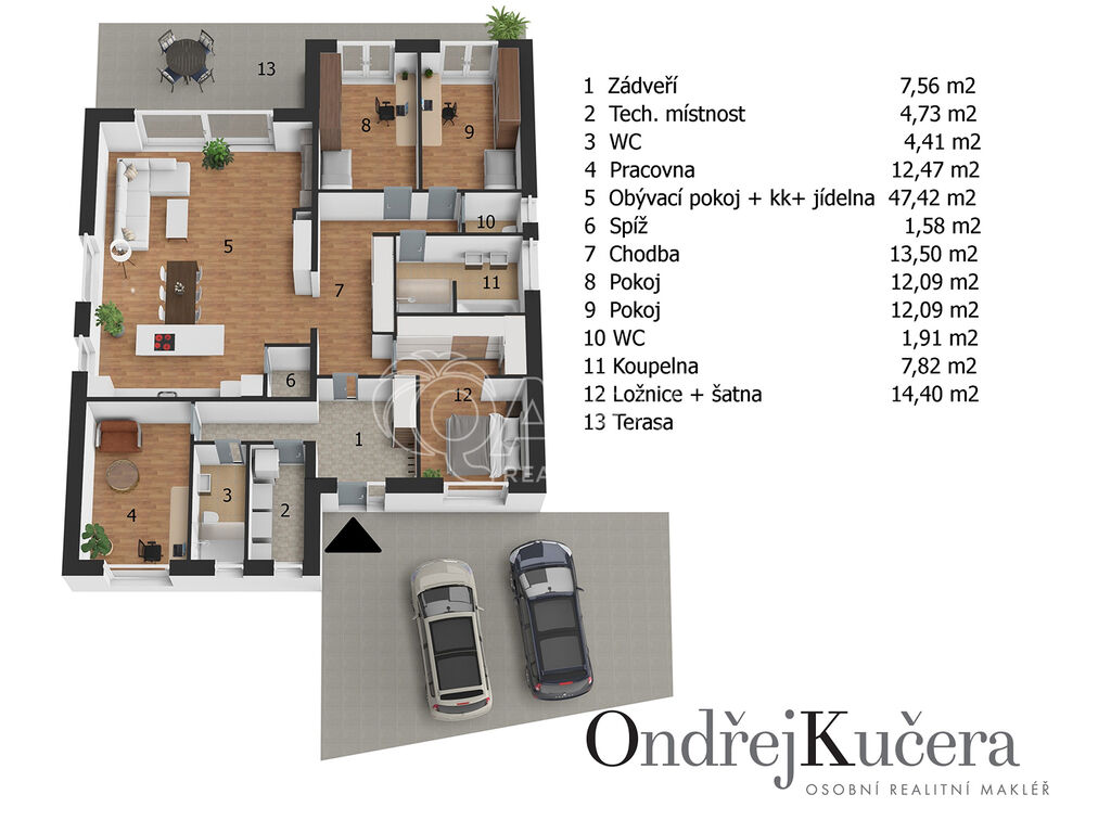 V ceně pozemku je i projekt se stavebním povolením pro vybudování přízemního rodinného domu, takže můžete začít ihned stavět. Jde o příjemně navržený cihlový bungalov s energetickou náročností typu A s dispozicí 5+kk s terasou a parkovacím stáním pro dva vozy o celkové zastavěné a zpevněné ploše 268 m2. Pro okamžité čerpání elektřiny na případnou výstavbu je dodělána dodatečná přípojka. V roce 2025 je plán napojení domu na již vybudovanou obecní kanalizaci, takže navržená jímka se využije jako retenční nádrž na dešťovou vodu.