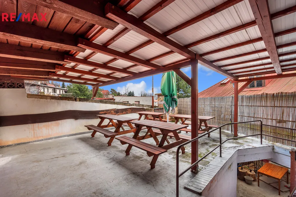 Horní a spodní terasa 65 m², krásnou dominantu restaurace tvoří částečně zakrytá zahrádka, ideální na letní měsíce. Nutno podotknout, že v Hořicích je toto jediná restaurace s terasou. Pokud se terasa přebuduje, může aspirovat na nejhezčí prostředí a romantikou v Hořicích.