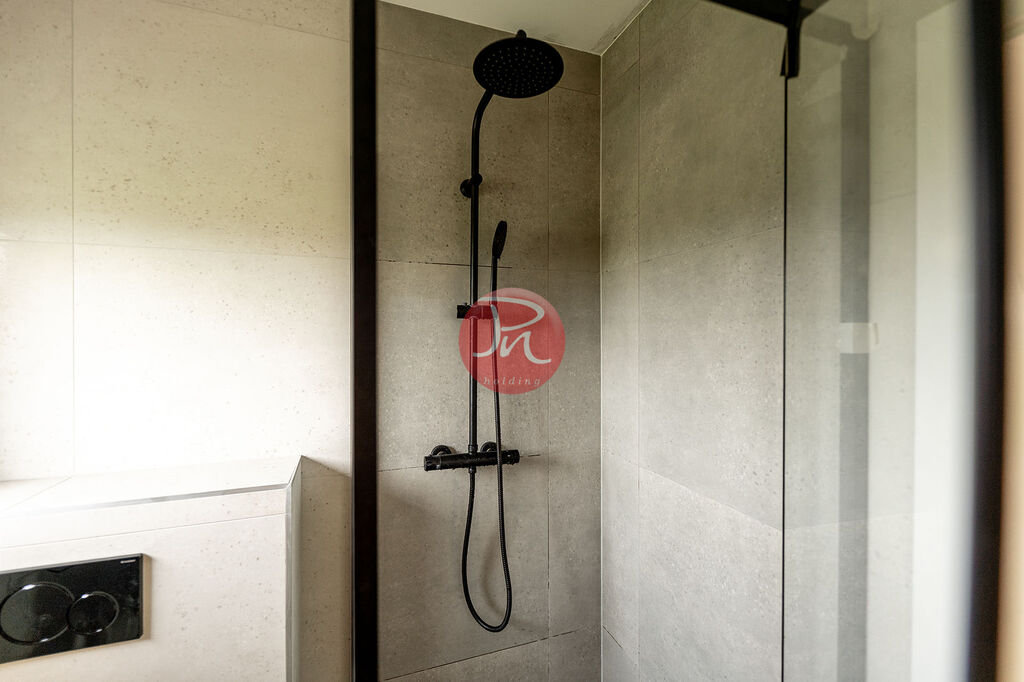 Ve spodním patře je prostorný obývací pokoj, kuchyňský kout, pokoj pro hosty, technická místnost, koupelna se sprchovým koutem a toaletou.