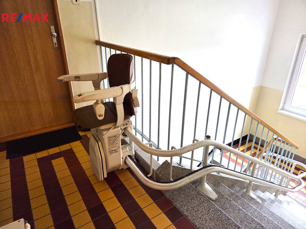 Bytový dům prošel částečnou revitalizací – výměna oken, rekonstrukce stoupaček, zateplení fasády. V domě je absence výtahu, ale k nabízenému bytu do 4. NP je zabudována schodišťová sedačka, což zajišťuje pohodlnější přístup.