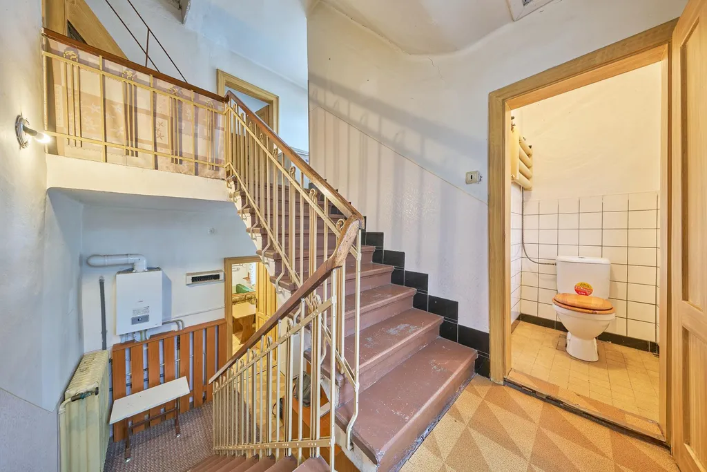 Nemovitost je smíšené konstrukce, převažuje cihla. Okna jsou původní, špaletová, dřevěná. Dům zdobí elegantní mansardová střecha. Nemovitost je napojena na rozvod elektřiny, vytápění plynovým kondenzačním kotlem do radiátorů v celém objektu, ohřev vody zajišťuje elektrický bojler umístěný v koupelně, napojení na obecní vodovod, odpadní vody svedeny do kanalizace. Dům je v původním stavu, takže bude nutná částečná rekonstrukce k vytvoření rodinné atmosféry. Nemovitost lze využít i jako vícegenerační bydlení nebo investici k pronájmu. U domu se nachází udržovaná zahrádka - ideální k relaxaci po práci.