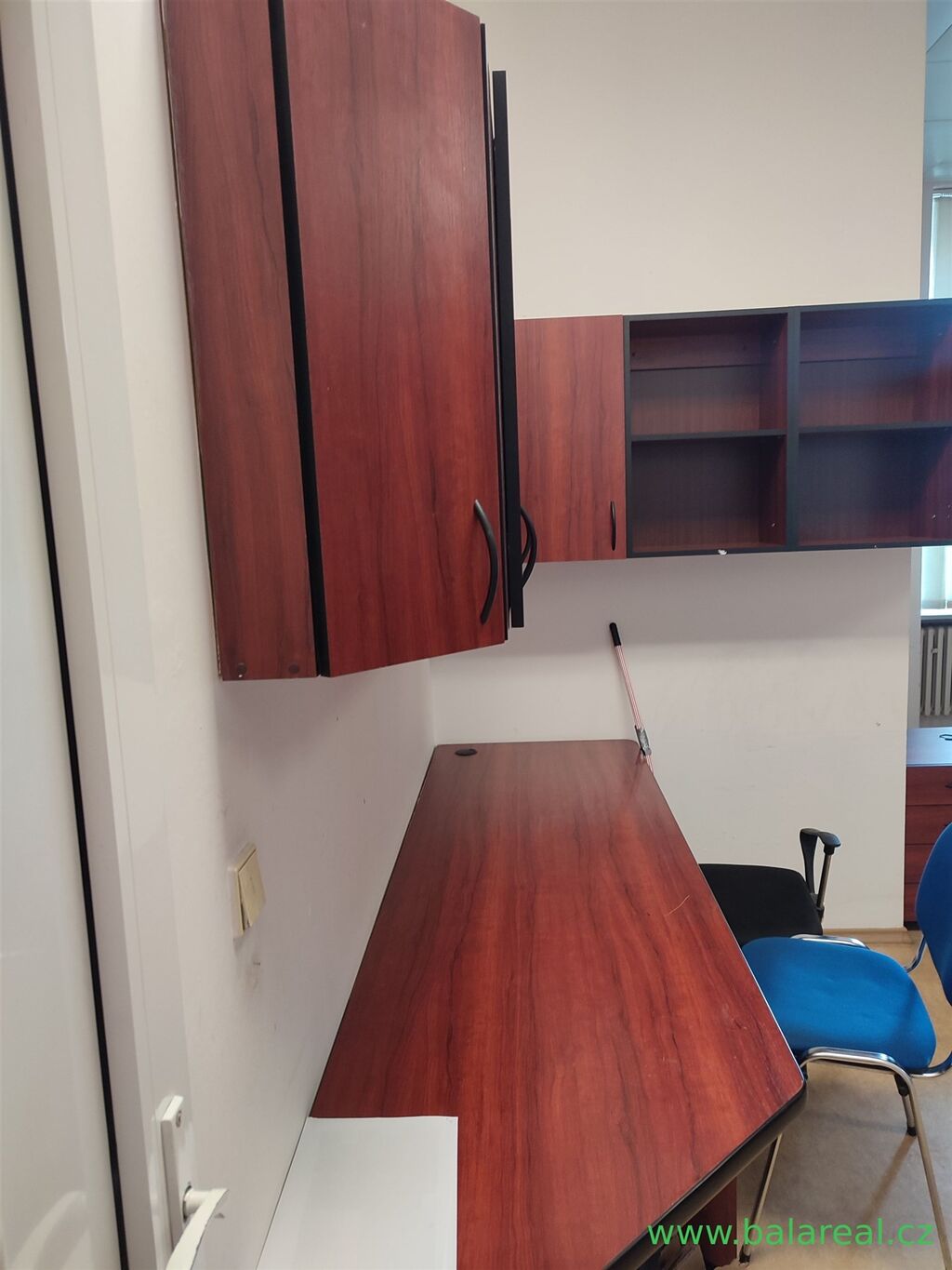 Po rekonstrukci společné sociálky. Vybaveno nábytkem: skříňky, psací stůl, židle, dřezové umyvadlo v krátké lince