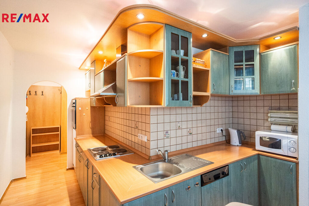 - kuchyňská linka s varnou deskou a elektrickou troubou, mikrovlnnou troubou a prostornou myčkou.